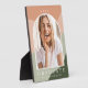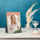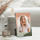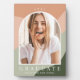 Create a memorable and unique graduation keepsake with this photo plaque featuring a vertical or portrait orientated photo in a unique arched layout, on a background of organic wavy stripes in shades of forest green, sage, and peach. "Graduate" appears beneath, along with your school or college. Personalise with your graduation year curved across the top.