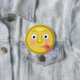 Pin some fun onto your backpack, jacket, or lanyard with this funny tongue-out emoji button. This small accessory features the hilarious, goofy face with the big licking tongue, making it a perfect conversation starter. It's a great way to add a quick pop of humor and personality to any item. Ideal as a party favor, a stocking stuffer, or a unique collectible for fans of quirky icons and comical graphics.