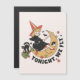 Take off into the magic of Halloween night with this whimsical greeting card featuring the phrase “Tonight We Fly.” A charming witch rides her broomstick through the sky, accompanied by her mischievous black cat, all set against a peaceful crescent moon. This enchanting artwork captures the spirit of fun, freedom, and flight that defines spooky season.