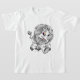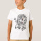 100% cotton so perfect for summer, It is a nicely designed t-shirt, the fabric is soft and the seams finished well, the body of the t shirt has no side seams. I bought a medium size for my two grandsons, aged 9 and 8 it will be slightly big on them but I would rather that than too small