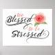Elegant Calligraphy Typography Design with words in black and light pink, "Too Blessed to be Stressed."