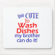 Too CUTE to wash dishes brother can do it kids sisters youth boys girls teens work humour boulder