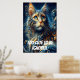 A stunning painting capturing the gaze of a cat with mesmerising blue eyes. The cat is depicted in intricate detail, showcasing its furry coat and expressive eyes. Too cute to be ignored.