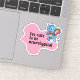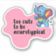 A pick sticker with a cute and colourful elephant saying "too cute to be neurotypical"