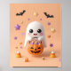 A kawaii-style ghost with big sparkling eyes and a friendly smile, holding a pumpkin candy bucket. Surrounded by pastel stars, candy corn, and little bats, all in soft bright Halloween colours (orange, purple, black, white). Cute, fun, and perfect for kids. High-quality, no background clutter, perfect for wall art.Bring fun and charm to Halloween with this “Too Cute to Spook” ghost poster. Perfect for classrooms, kids’ rooms, or party decor, this playful ghost makes the spooky season joyful and lighthearted.