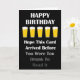 Send a Funny message to a family member or friend their birthday. Featuring striking white text on a black background the card shown 5 glasses of beer and the humourous message "Hope this card arrives before you are too drunk to read it". To emphasise the message the text fades towards the end. Sure to raise a smile with the recipient, Put you own special Birthdays message inside.