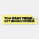 TOO MANY FREAKS NOT ENOUGH CIRCUSES BUMPER STICKER