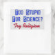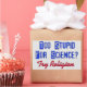 It's time to fight back against the religious fanatics who want to deny Science in favour of superstition. In blue letters "Too stupid for science?" answered in red letters "Try Religion."