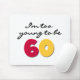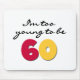 I'm too young to be 60! If the 60th birthday seemed to creep up on you, if you refuse to get any older, at least in spirit, or if you're looking for a great gift for the person turning 60 years old that can be used the entire year you'll love this black, red, and yellow text design.