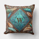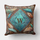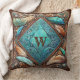 Western Tooled Leather Print with Southwest Style Turquoise, tan, brown feathers.