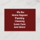 Picture of a group of tools are featured on the front of this business card. Back of card features text for what your business offers to customers. Card can be used for builders, home repair, handyman, general contractor and more! Customize with your own choice of font style, size and coloring, text lines and paper type to fit your needs. Purchase in one pack of a hundred or save with bulk orders.