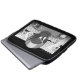 The sleeve is made of nice feeling material and seems very durable. I'm not sure how easy it'll be to clean, but the construction seems sound and the fabric is quick thick. I also like the double zipper. The printing is lovely and appears durable. The white on black contrast is nice, and the design very elegant.