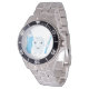 Has heft and feel of expensive stainless steel quartz watches. Good band with safety catch. I removed links, which is easy because engraved arrows show direction to push the linking pins. As always by this seller, the image (a railroad logo) is a perfect reproduction of my emailed image, and is precisely spaced and aligned.