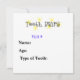 Here's a fun tooth certificate for you to leave under the pillow with the money. It also makes a great addition for your child's baby book. You can customise this in several ways. (1) Type in the Child's Name. or Delete the text if you want to write it it yourself. (2) Same with the "T.Fairy" signature. You can keep that as is, or type in Tooth Fairy or Ms. Fairy or whatever you'd like. If you want to hand write it in, then just delete the text in the box. We left the $___ slot to be hand-written in. NOW THE BACK..... We've also added some info. for you to put in as a record. But, this is all up to you. You can change the categories that we have if you want, or add some more. We've designed this to fit the 5"x5" size. But, you've got the options to try other sizes. If you do, be sure to re-align the text, etc. NOTE: WE ALSO HAVE A TOOTH FAIRY PILLOW!