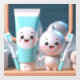 This adorable image features a tube of toothpaste and a little silver character, both with big, happy eyes and rosy cheeks. They stand side-by-side, each holding a toothbrush, ready to start their day with a smile. The bright blue and white colour scheme, along with the playful characters, creates a cheerful and inviting atmosphere, perfect for promoting good oral hygiene.