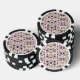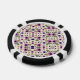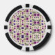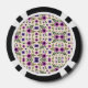 Top and bottom view of a poker chip featuring a floral pattern with purple and black flowers on a light background. Bold black and white edges.