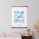 Root your teammates and yourself on with a Dive Girl Dive slogan wood wall tapestry for the diving competition, pool, dorm, or home. Comes in a variety of text and image styles, from pike position to swan dive to getting ready for entry.