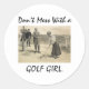 Get out of her way, she's driving down the course in retro style. Great Golf Girl and Don't Mess With a Golf Girl slogan for all those golfing females and their friends who like to look stylish on the course, in the clubhouse, or at home. Makes a great gift for the women's golf fan or player in your life from beginners to pros. Comes in image only version, too, that's great for guys.