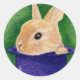 Illustration of a bunny peeking out of a magician’s top hat. Wishing that special person a magic birthday, easter or just popping out to say magical hello! Also lovely matching cards, stamp, magnet, mousepad, bag, apron, t-shirt.