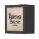 Personalised Ring Bearer tile gift box for your special wedding attendant. Top hat graphic on the word ring bearer. Small red heart in text.