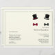 This fun design is called Top Hats and Bow Ties Gay Wedding. The background is a pretty ivory with a thin black border. Centred at the top is a black and burgundy top hat with a burgundy bow tie and a black and ivory top hat with a black bow tie. Each groom's name goes in between. This set has invitations, save the date cards, response cards, thank you cards, table number tent cards, envelope seals, wine labels, binders, return address labels and many more day-of wedding stationery pieces, favours, and gifts available. Use the envelope seal stickers for any of your DIY gifts - these are available in both large and small sizes! All elements are printed on our high quality products, they do not include any real gold, jewels, embossing, or other textile elements. All designs are copyright Noteable Expressions, Inc. All rights reserved.