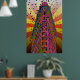 A whimsical, colorful, psychedelic view of the top of the New York City icon, the Flatiron Building. This one displays reddish/orange and yellow rays. It also comes in additional color patterns.