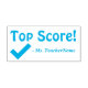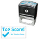 This inspirational rubber stamp design features the positive message "Top Score!" and a customised tutor's name. It also features a decorative check mark. It could be used by a teacher or educator when grading student work, to acknowledge that a student has done an exceptional job.
