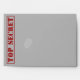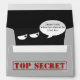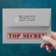 TOP SECRET Custom Envelopes featuring mysterious eyes peaking out of the very dark inside of the envelope with a speech bubble where you can add your own personal message. TOP SECRET stamps and incriminating fingerprints also add flair to these fun envelopes. Add Your Address to the back flap!
