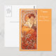 A postcard with an Art Nouveau illustration by Alphonse Mucha (1860-1939), titled Topaz. A portrait of a fashionable woman dressed in an orange gown. Part of the Precious Stones Series from 1900.