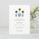 Elegant Hand painted watercolor boxwood topiaries in blue and white pot, Easter brunch and egg hunt invitations.