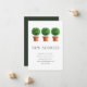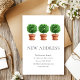 Introducing a charming moving announcement card that captures the essence of joy and new beginnings. This elegant card features a beautifully illustrated scene of three topiary plants elegantly housed in terracotta pots.