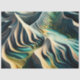 "Topographic Currents" is a high-definition 3D digital landscape featuring flowing hills and valleys rendered in a sophisticated palette of dark blue-green, light yellow, beige, white, and black. The smooth, river-like lines and undulating terrain create an abstract yet realistic topographic scene, ideal for use as a striking background or modern design element. Perfect for adding depth and elegance to digital spaces.