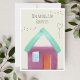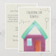 Personalizable invitation card for topping out ceremony. Alternative colorful design of a fictional dream house.