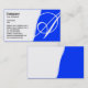 An attractive two toned business card template with a torn away look which partially reveals a script style monogram letter, the letter can of course be changed . Ready to be customised with your details. The design offers plenty of scope for additional customisation. Plenty of space for your company name and even the addition of a logo. The lighter colour in this template can also be customised. The theme is also continued on the back, which can be left plane or used for a variety of other details. Suitable for many types of business.