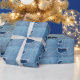 Torn denim fabric texture, blue hues. wrapping paper