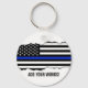 A custom police keychain featuring a torn out police thin blue line style American flag.