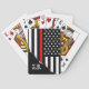 A set of playing cards featuring an American style thin red line Symbolic firefighter flag along with a spot for your gift recipients' initials.