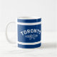 Great looking classic white Toronto Hockey City logo on blue mug with white stripes. Makes a great gift for the coffee drinking hockey fan.