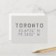Toronto longitude and latitude coordinates in distressed fonts give this postcard a modern urban look