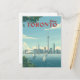Transport yourself to the heart of Toronto with this captivating postcard showcasing the city's iconic skyline alongside majestic sailboats. This postcard captures the essence of a vintage travel poster with its charming 1920s-1960s aesthetic.