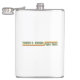 The flask itself is fine. It’s a cheap flask, obviously bought in bulk, however am prepared to overlook that. Given that it is a personalized item, I would have liked to have seen gift boxing instead of the generic packaging. Terrible printing, and/or quality. It’s a cheap, tacky vinyl. It is not cut straight and is also applied in a way that it is overhanging the bottom, causing the glue to catch on items and it will eventually roll and tear, damaging the wrap.