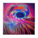 A bright, multi-coloured (red, purple, blue) looping, rotational fractal image. Customise by adding your own text.