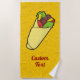 Tortilla wrap icon. Junk food outline icons yellow pattern background. Custom text.