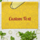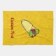 Cartoon illustration of tortilla sandwich wrap. Junk food outline icons yellow pattern background. Custom text.