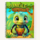 Personalise the back cover of this adorable "Jungle Welcome" notebook! Featuring a unique whimsical baby box turtle cartoon graphic animal character in a lush forest scene, inviting you into a world of imagination and creativity. This design is perfect for tortoise lovers, safari woodland, nature wildlife fans, and anyone who enjoys cute, cosy zoo vibes.