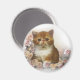 Cute tortoiseshell persion kitten with soft yellow and pink roses as background make this magnet the perfect small gift for any cat lover.