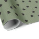 Tossed freeheand black hearts on solid olive green wrapping paper