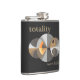 The flask itself is fine. It’s a cheap flask, obviously bought in bulk, however am prepared to overlook that. Given that it is a personalized item, I would have liked to have seen gift boxing instead of the generic packaging. Terrible printing, and/or quality. It’s a cheap, tacky vinyl. It is not cut straight and is also applied in a way that it is overhanging the bottom, causing the glue to catch on items and it will eventually roll and tear, damaging the wrap.