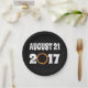 Total Solar Eclipse August 21 2017 text design with sun decoration. The total solar eclipse will be visible from a narrow path spanning all across the USA from the West Coast to the East Coast on August 21, 2017.