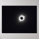 Total solar eclipse, reveals a dark sky, and massive prominences of the sun's corona, extending far beyond the lunar disc.